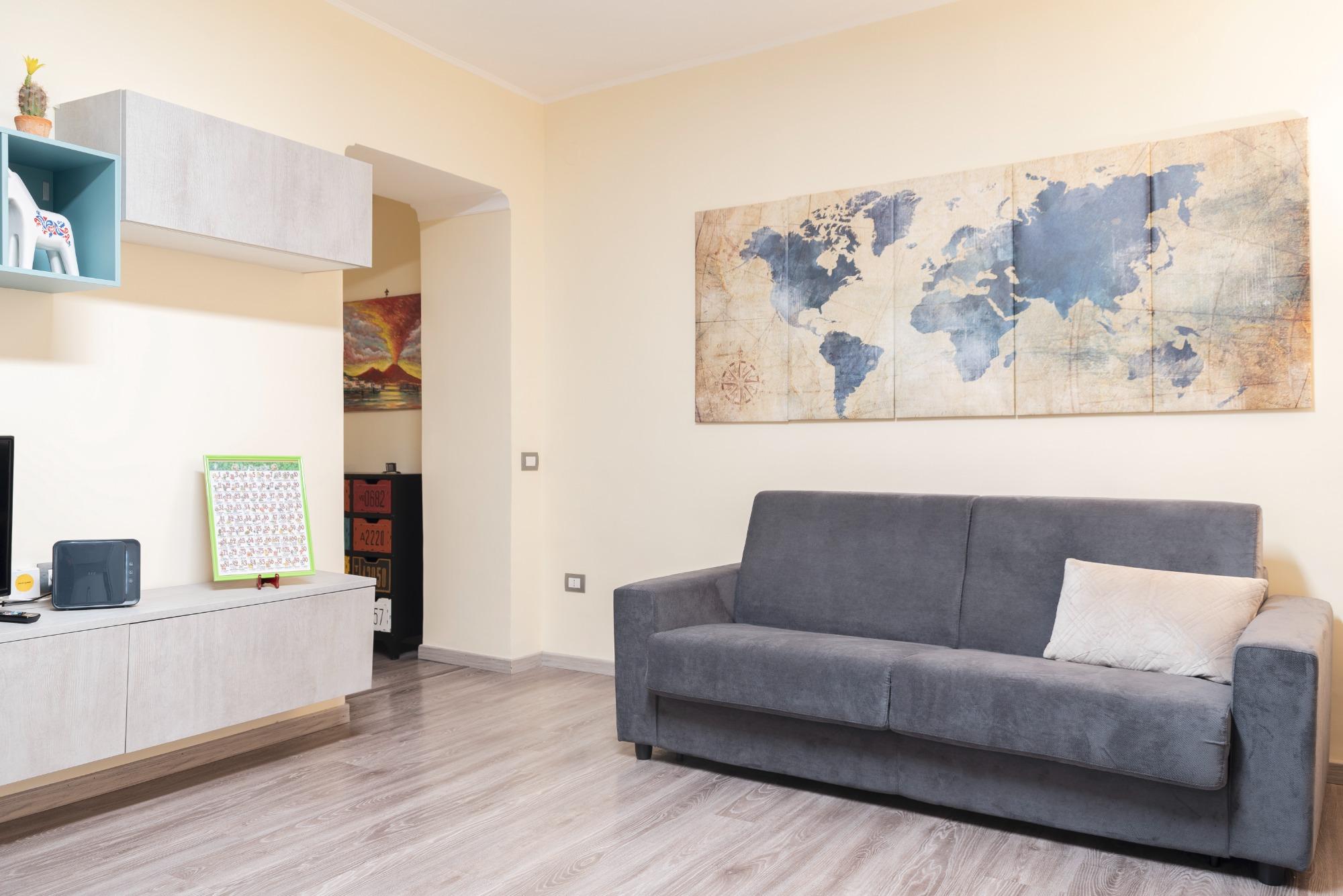 A breve distanza si snodano anche via Toledo e via Chiaia, mete ideali per chi ama fare shopping e scoprire locali, caffè e pasticcerie. La presenza di metro, funicolare e porto facilita ogni spostamento, sia verso il centro storico sia verso altre zone della città o le isole del Golfo. Nelle vicinanze non mancano ristoranti, farmacie, supermercati e servizi di ogni tipo, rendendo il soggiorno pratico e piacevole.